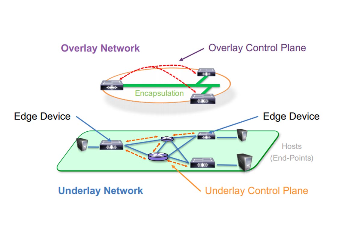 Overlay – Seria a base onde é alocado uma parte relacionada à control-plane, ou seja, tudo que for baseado em software ficaria alocado nesta camada. Vale ressaltar que os componentes do fabric estariam alocados no overlay, já os componentes do edge (SD-ACCESS) estariam alocados no underlay. Componentes do fabric estaria no data center e os componentes do edge devices ficariam em uma infraestrutura próxima (local) aos usuários.