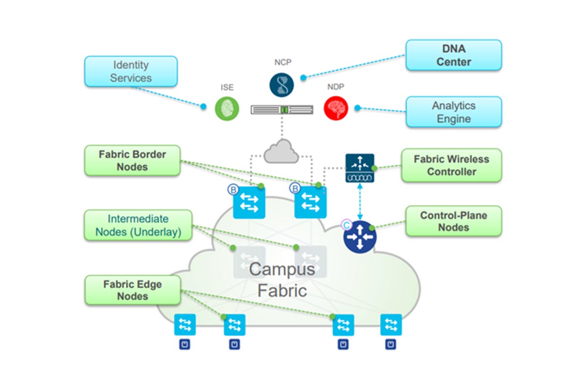 Quando falamos de campus fabric, estamos falando de duas camadas, underlay e overlay. Quando dividimos a infraestrutura em duas camadas, em underlay não é necessário alocar hardware robusto para se conectar com alguma cloud provider.